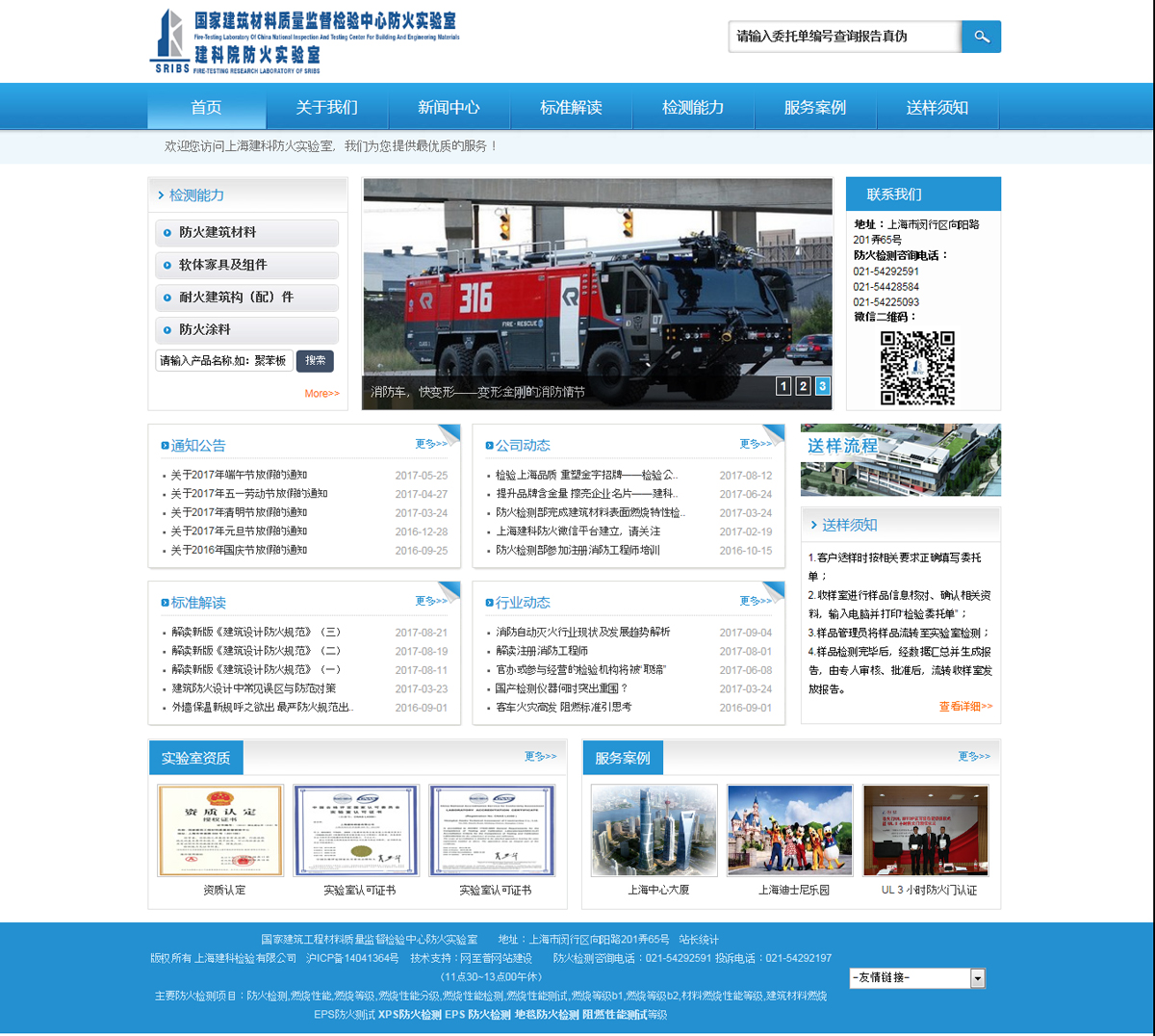 上海建科檢驗(yàn)有限公司防火實(shí)驗(yàn)室