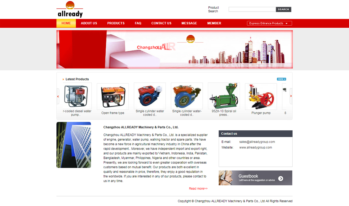 Changzhou ALLREADY Machinery & Parts Co., Ltd. is a specialized supplier of engine, generator, water pump, walking tractor and spare parts. We have become a new force in agricultural machinery industry in China